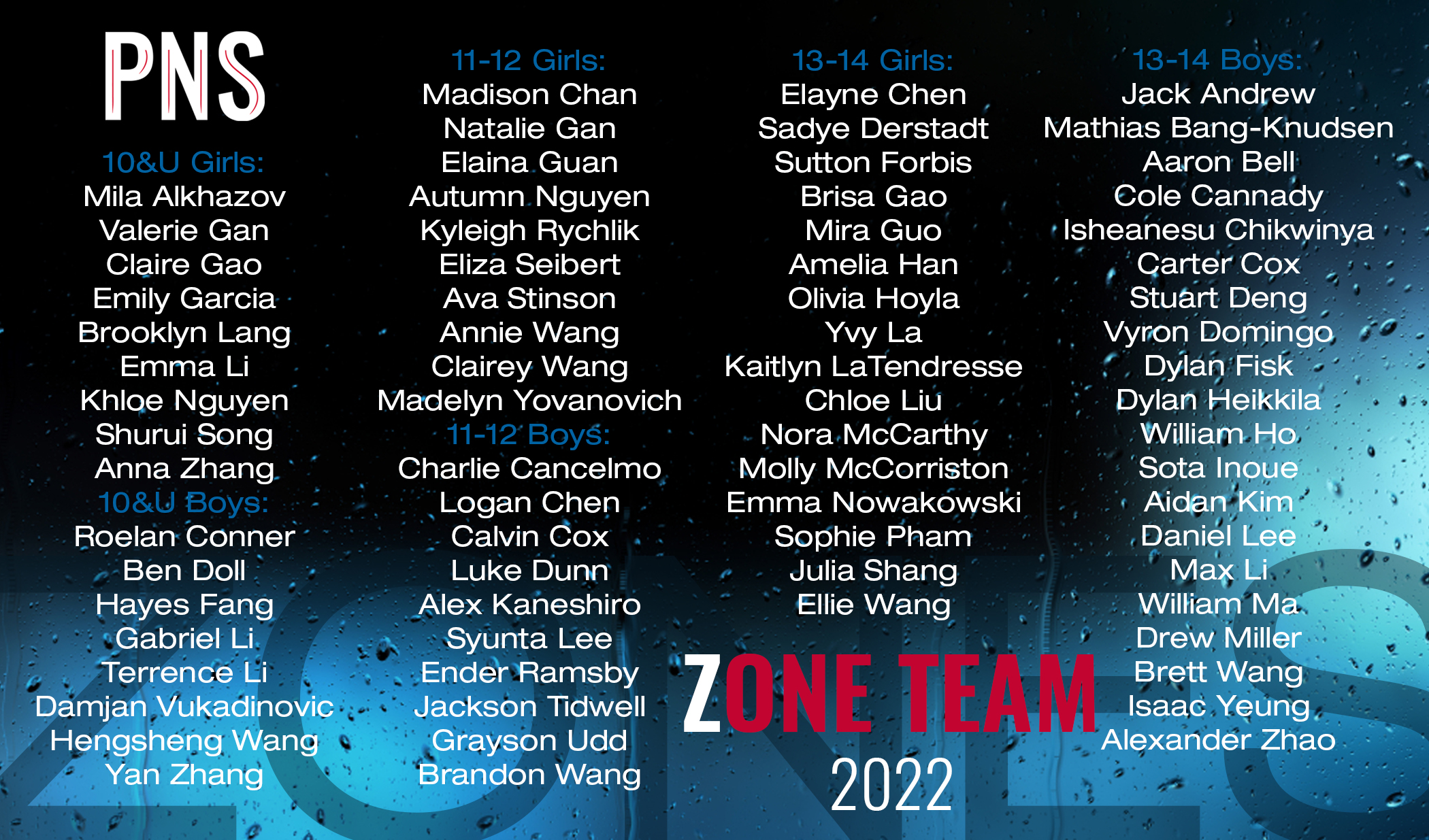 7/15/21: Congratulations to all our athletes selected for the 2021 PNS Zone Team! Everyone in Pacific Northwest Swimming will be rooting you on as you compete in Texas at the Western Zone Age Group Championships. Zone Team coaches will be contacting you soon to welcome you and to provide additional information for the trip. Have fun and swim fast—you are going to do great!